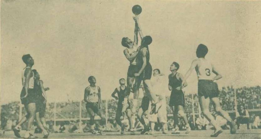 1933年10月在南京举行旧中国第五届全运会,男篮比赛经过数日淘汰赛后,产生上海、河北、广东、南京四个队参加半决赛。决赛时,河北队以49:30胜上海队,上海仍为亚军。