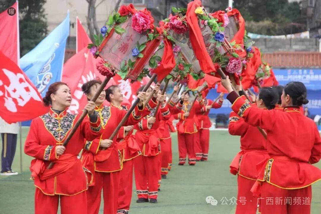 各赛区将本土文化深度融入赛事全流程,打造独具地域特色的文化盛宴。武宣德比赛前,街舞《青春律动》、舞龙《盛世龙腾》、歌伴舞《这里是武宣》接连上演,广西文旅推广大使李思宇献唱《广西尼的呀》,现场全体人员合唱《歌唱祖国》,家国情怀与民俗风情交融;宜州赛场开场演出融合国家级非遗刘三姐歌谣、彩调与桂剧,中场节目《味道宜州》以歌舞展示地域美食,徐霞客、黄庭坚等历史人物创意“现身”助阵;灵川赛前呈现走牌灯、舞龙舞狮等民俗表演,悠扬的《古韵灵川》乐曲中球员互赠特色礼物;玉林与桂林赛前玉林八音和舞龙表演,球队互赠牛腩粉与桂林米粉,以美食为媒传递地域温情。